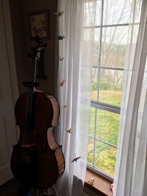 ....and here is a garland of origami swans... my son has made and gifted these to me over the years, and I finally figured out a lovely way to display them!