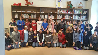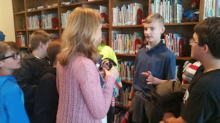 at the library with one of the classesThanks to the mad organizational skills of Jamie Twente, director of Springville Public Library who (along with lovelies Sarah and Ann!) coordinated with Springville Middle School, all the 6th graders read my book LEAVING GEE'S BEND before the visit. Isn't that fabulous?! It makes SUCH a difference in the quality and impact of the visit. We began the day with an assembly at the school first thing in the morning. The rest of the day was spent just a few blocks away at the library, as one by one, the classes came in for a Q&A session. The kids were so sweet and asked such great questions! This was a walking field trip for students that also included a stop at a quilt exhibit on the adult side of the library as well as a visit to the local historical museum. (I haven't checked it out yet, but I will!) What a sweet little town filled with sweet people! I'm so grateful for this opportunity, and for the warm welcome.