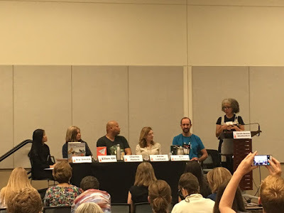 Icy Smith, Ellen Oh, Charles Waters, Irene LathamBill Konigsberg, Carole Boston WeatherfordAnd how inspiring was the Mirror, Mirror: Reading All Readers panel?! Carole Boston Weatherford was the perfect facilitator, blessing us with her words and ideas, and I loved getting to know authors Bill Konigsberg, Icy Smith and that dynamo Ellen Oh! I wrote so many notes during the panel... about the courage it takes to share books like these, how it's complicated and important and it's our job to tell the truth. AND to write the stories that call to us. To proceed carefully and thoughtfully. Do the research. Listen.