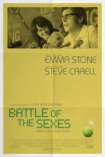 This weekend we took a trip back to the 70's to see BATTLE OF THE SEXES, the movie version of the tennis match between Billy Jean King and Bobby Riggs. (Paul remembers this event, but I was too young!)Emma Stone and Steve Carell were great in these roles, and the story was about more than just tennis -- we see Billy Jean coming to terms with her homosexuality AND Bobby Riggs (and his family) suffering the consequences of his gambling addiction. Some things change; some don't.