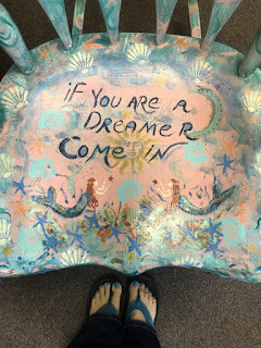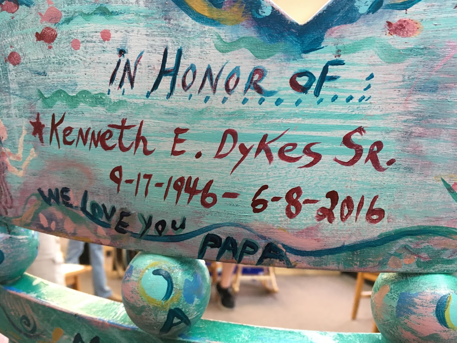 We love you, Papa...My father loved books. During his lifetime he read on average a book a day. When he wasn't reading, he was listening to a book! His dream was to retire to his hometown Port St. Joe, FL, and build a library to house his thousands and thousands of books.He died before that could happen, so, as a way to make his dream come true, our family commissioned June at Poppy Cottage to create an artsy memorial rocker to be housed in the children's department at Corinne Costin Gibson Memorial Public Library in Port St. Joe.