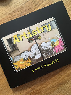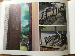 From Violet I received a photo-illustrated poem-book! She titled it "Artistry," and it's a collection of images and words that show the everyday art found in her hometown (Langley). Perhaps my favorite spread features benches and a mural of a door opening to a flight of stairs.