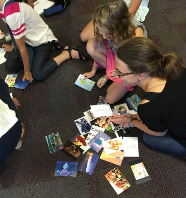So what did I do with this homeschool group? Well, the library billed it as "local author will talk about what it takes to get started in the literary world." Only I didn't discover this verbiage until a day before our scheduled meeting -- after I had created a lesson on writing poems and stories after Pixar postcards.