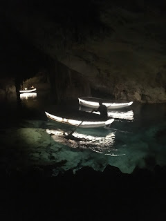 musical boats!2. Near Palma de Mallorca at the Cueves del Drach (which translates to "Cave of Dragons). Our tour guide said their would be a concert, and after the concert we could go left to ride the boats across the cave lake, or right to walk across the bridge. I was expecting a cave show like I've seen here in the U.S.: recorded music with laser lights. But that's not what we got. What happened was this: after the announcements (in 3 different languages), and in the dark, we heard very faint strains of Pachelbel's Canon in D. The music got louder as a lighted boat floated toward us. And then another boat! The musicians - violin, cello, piano -- were on the boats! It was like being inside Phantom of the Opera! Completely magical. I will never forget it. (Meanwhile, caves, it seems, look pretty much the same whether in the U.S. or Spain.)