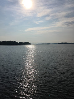 The beautiful Alabama RiverOur morning started with a gorgeous 7:45 ferry ride. What a great way to start the day! I remembered all the reason I love the water and was filled with such peace and calm...When we arrived at the ferry terminal/nutrition center, we were greeted by Doris Young and her granddaughter Maya, who was having her breakfast -- and a beautiful blue quilt-in-progress: