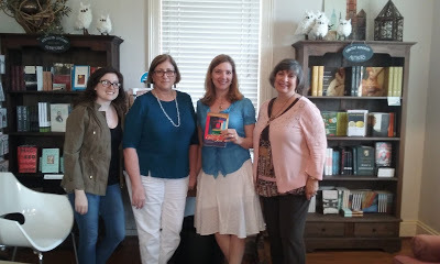 Here's a picture of Avery, Easty, me, and my friend Eve, who is also a book lover and quilter and all around lovely person (more on my visit to West Alabama Quilters Guild tomorrow!):
