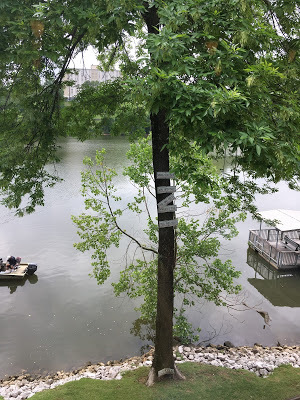 Oh: before the book event, Eve took me to the Cypress Inn in Northport for lunch! It's on the river, and we had (delicious!) catfish. Here's pic of our view of the river which includes a tree with markers for how high the water has been at various times in history. I love Alabama! And books! And rivers!