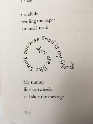 There's also a snail in this book! It's one of several shape poems. It's so adorable, I have to share it here: