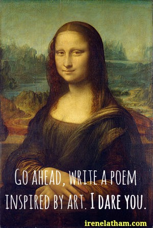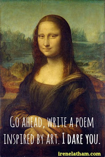 Isn't that wonderful? I am honored to have my very own copy of this book, thanks to Ramona.Also please keep in mind that while these were college students, students of all ages can write poems inspired by art! If you're interested in this workshop for your group, please contact me by email irene (at) irenelatham (dot) com.