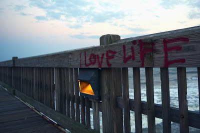 Thierry LundyAlso inspiring was the performance poet Thierry Lundy who preceded me at the evening's reading. Wow! I loved the wordplay in his poem, his performance, and the message, which reminded me of this picture my son Eric snapped during spring break at Tybee Island (GA) pier: