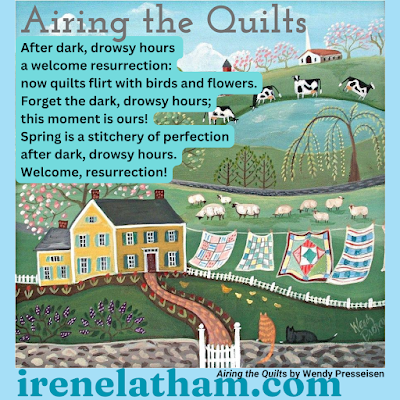 For this week's ArtSpeak: FOLK ART poem, I am still writing kind of out of season! Today it's an early-spring airing of the quilts piece that caught my imagination...I decided to write the poem as a triolet (which is reliably a way "in" for me when I don't know what else to do). Thanks so much for reading!