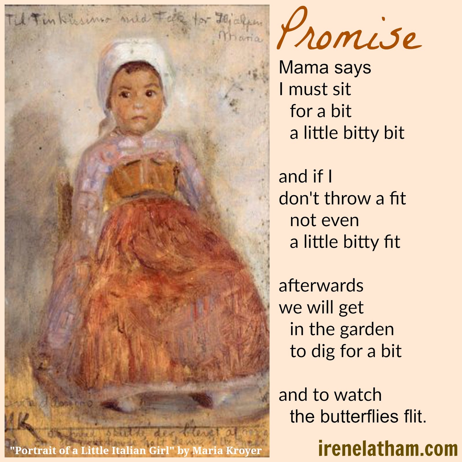 Promise- after “Portrait of a Little Italian Girl” by Maria KrØyerMama saysI must sit for a bit a little bitty bitand if Idon't throw a fit not even a little bitty fit