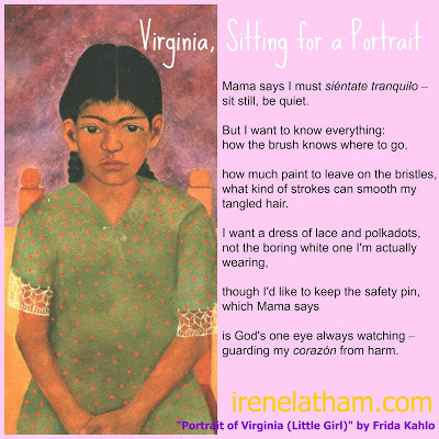 Virginia, Sitting for a Portrait- after “Portrait of Virginia (Little Girl)” by Frida KahloMama says I must siéntate tranquilo –sit still, be quiet.