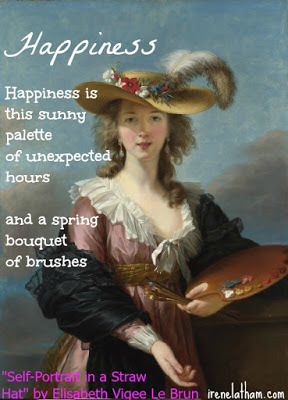 Today I have another woman for you -- and a self-portrait. The artist Elisabeth Vigee Le Brun was apparently a favorite of Marie Antoinette! I loved learning more about her in this Guardian article. I didn't read the article until AFTER I'd written my poem, so this one isn't specifically about the art or the artist. And isn't that one of the great thing about writing art poems? It can be whatever you want! I was drawn to the act of the artist creating a self-portrait, what an indulgence that must be (because it doesn't pay anything) and how rewarding it surely must be.