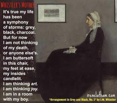 - Irene Latham-------------------Readers, I already had motherhood on my mind after yesterday's poem about the Mama cat and her kittens. AND THEN our oldest son came over for supper last night. It is always a joy to share space with him! And that became the empathic bridge between me and Anne Whistler, who was sitting in a room with her artist-son Jemie (her nickname for James). You can read more about this portrait (and those real-life storms) at The Detroit Institute of Arts website. Thank you for visiting! <!-- @page { margin: 0.79in } P { margin-bottom: 0.08in } </style> <br />-->