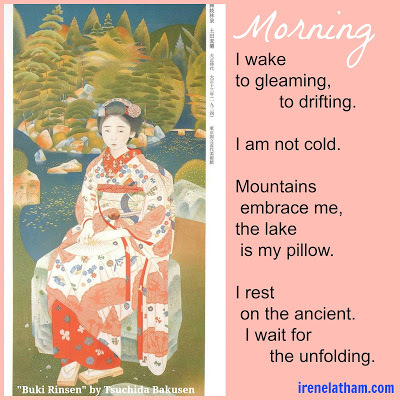 I rest on the ancient.I wait for the unfolding. <!-- @page { margin: 0.79in } P { margin-bottom: 0.08in } </style> </div>--> <br /><div style="margin-bottom: 0in;"><i><br /></i></div><div style="margin-bottom: 0in;"><i>- Irene Latham</i></div><div style="margin-bottom: 0in;"><iframe frameborder="no" height="166" scrolling="no" src="https://w.soundcloud.com/player/?url=..." width="100%"></iframe><i>-----</i></div><div style="margin-bottom: 0in;">Readers, you will notice that the formatting is different from the graphic to the page. That's because the page version wouldn't fit. And I kind of like it! I am still deciding. :) You might also notice I used adjectives in the place of some nouns -- gleaming (for sun) drifting (for clouds) ancient (for the boulder she's sitting upon). This is just something I wanted to try, so voila! It seems to changes the poem from observation to an offering -- now the poem can mean whatever the reader needs it to mean. I like it. :) Thank you so much for reading!</div><span style="font-family: "times";"><br /></span>