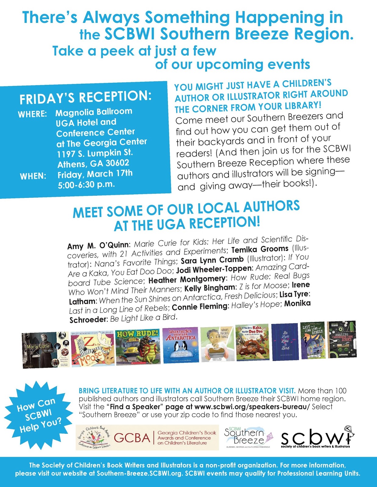 Speaking of fun, the festivities in Athens also include an SCBWI sponsored "authors in your backyard" session, as well as a reception. I am excited to meet more Georgia educators, librarians and book-lovers -- and of course to see SCBWI friends!
