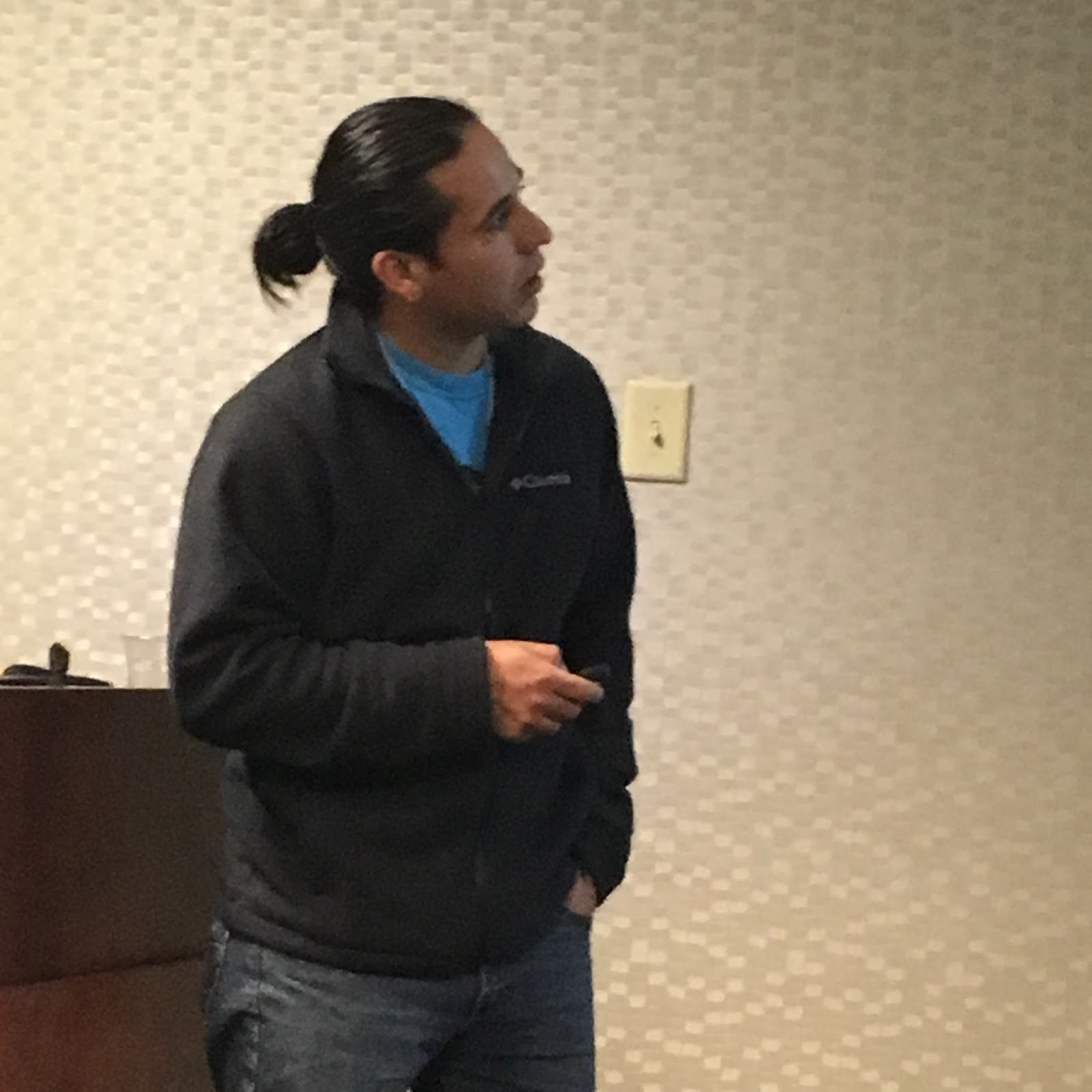 Duncan from the side, just like he drawsall his characters!4. Getting a peak into Duncan Tonatuih's process. Duncan enjoys creating books about social justice issues, and he demonstrated how he uses photoshop to make his books. His style is distinctive in that he only ever shows one side of a character's face, and he draws stylized ears and feet and hands. He also uses a lot of texture that he scans from real life (hair, blue jeans, etc.) and "paints" digitally onto his sketch. Fascinating!