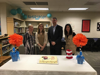 One of the best parts was lunching with a few students who asked me questions for a school newspaper article. These girls were so fun and savvy... I predict great things in their future!And check out this cake for Dr. Seuss's birthday! (From Edgar's Bakery. It was delicious.)