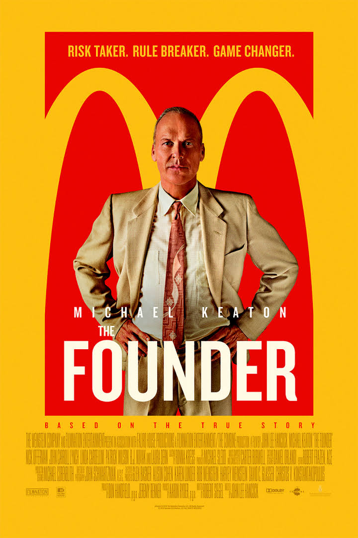And here is a little bit about THE FOUNDER, which is about Ray Kroc, the man responsible for bringing McDonald's nationwide and around the globe (100 countries!). I really enjoyed the movie, as it shows the good and the not so good about being ambitious. Success comes at a price, and sometimes the story gets changed along the way. Things (like marriages and integrity) are sometimes lost in the pursuit of success, and by God, when you make a deal, get it in writing.