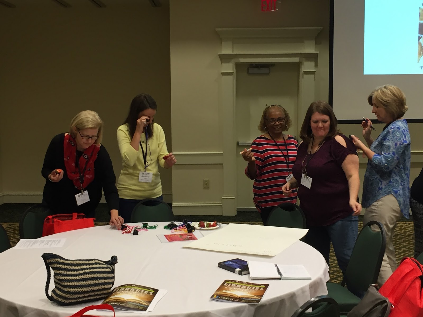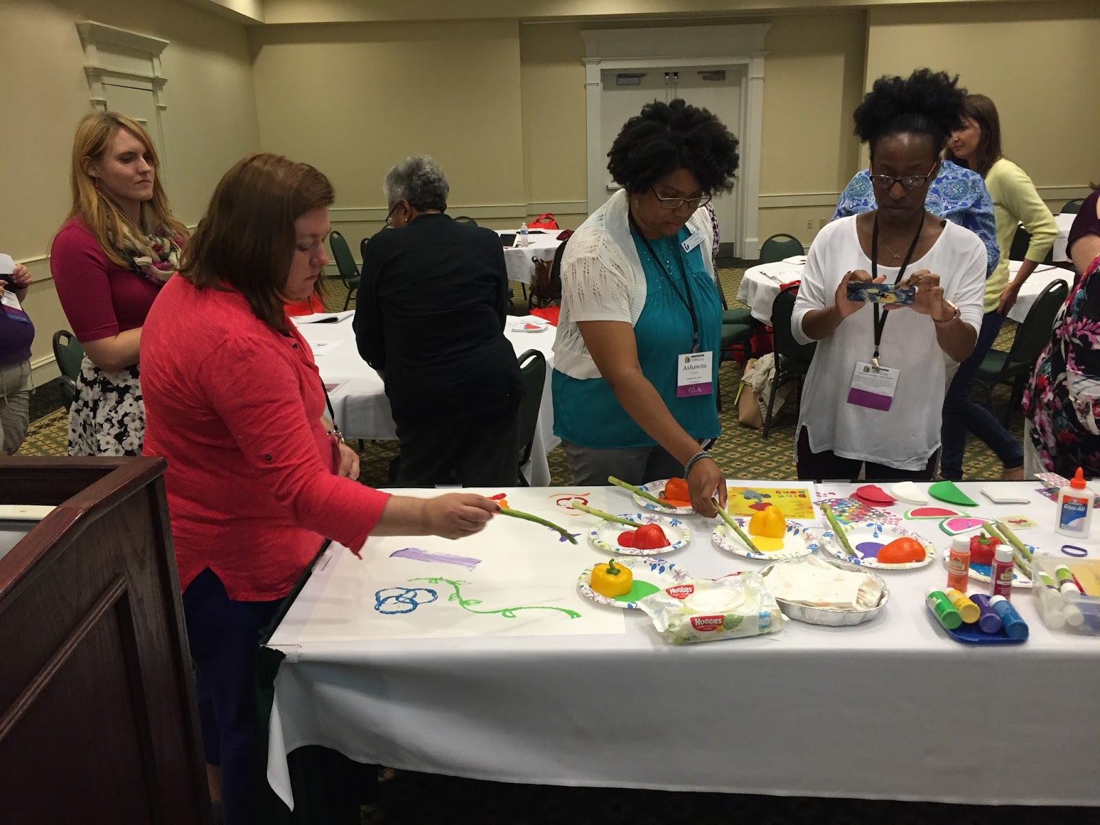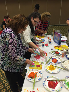 As I told the librarians, one of my goals for 2016 was to reach out to Georgia teachers and librarians, as I was born in Covington, Georgia and have always enjoyed thinking of myself as a Georgia "peach." And what I discovered (not a surprise) was that Georgia librarians are just as peachy as they can be! Thanks so much to those who attended for your enthusiasm for poetry and field notebooks in the first session, and for veggie-art in the second session! Here are some pictures taken by Paul who was my helper for the day: