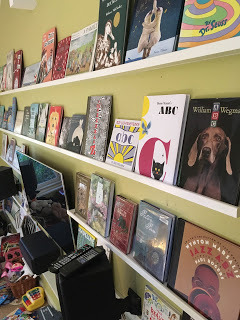Our first visitors at the Meet-n-Greet.Thank you for coming!The first place Ramona took me was to Island Books. This little indie bookstore has that warm, homey feel, and the children's department was awash in titles on my TBR list. We picked up copies of FRESH DELICIOUS and DON'T FEED THE BOY to take to a little meet-n-greet Ramona set up. And I do mean Ramona set it up: home-baked goods, check! Bottled water, check! Flowers from Pike Place Market, check!