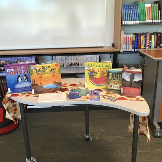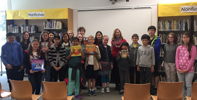 But the best part was talking with about 20 students who make up the book club Ramona runs (did I mention Ramona is RETIRED? Yep. She's one of those passionate educators who cannot stop!). Many of them had read my books, so they were able to ask more in-depth questions. We discussed things about being a writer, like, what to do when you want to give up; how to keep going; how to FINISH a story. These kids are thoughtful readers and eager learners -- my favorite kind of people to be around.Many thanks to Ramona especially, and all the amazing teachers and staff (Patty, especially), and co-principals MaryJo Budzius & Aaron Miller. I loved meeting so many enthusiastic educators. What a great place to learn!