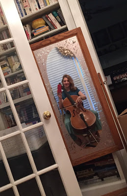 Home alone, so here I am using my practice mirror to take a selfie with cello. Ha!
