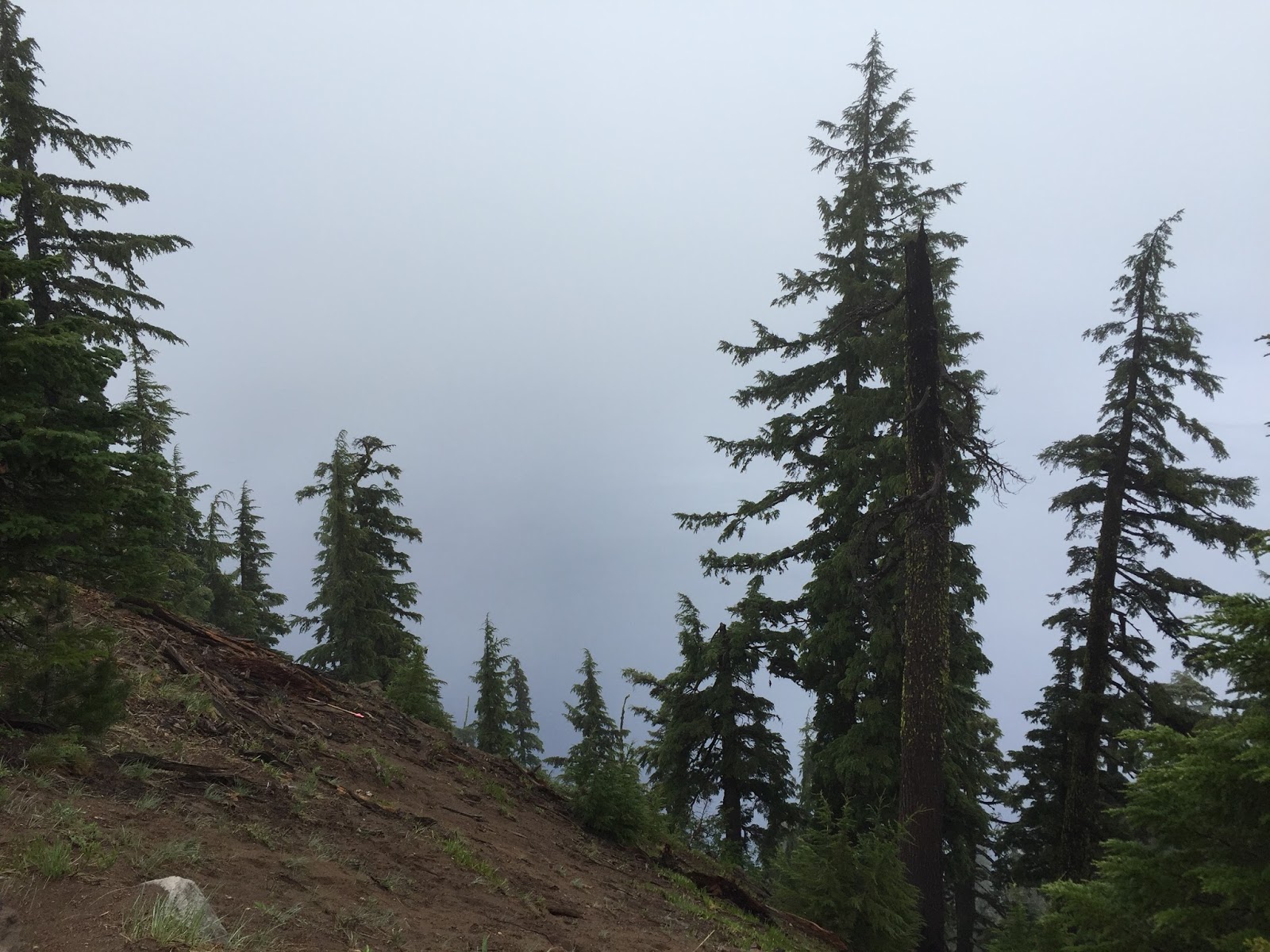 On the day we visited Crater Lake, it was chilly and overcast. When we arrived at the guard station, the park ranger warned us that we might not see the lake (which is visible 99% of the time). He was brusque -- "No refunds," he said. We didn't care -- we were there, and we were going to have a good time no matter what!