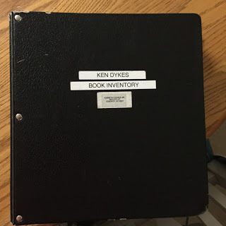 Anyone who collects anything knows that some organization is required. For his books, my father kept a "Book Inventory." Basically it's a big binder with computer pages listing the titles he owned, when he read them, and what box they were then stored in. (The last printing/update was 02/25/2016.)