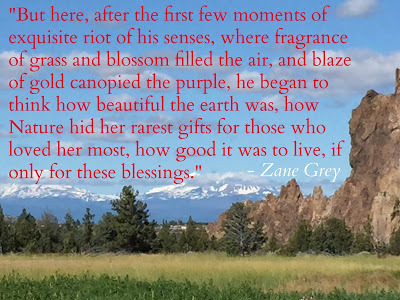 "But here, after the first few moments of exquisite riot of his senses, where fragrance of grass and blossom filled the air, and blaze of gold canopied the purple, he began to think how beautiful the earth was, how Nature hid her rarest gifts for those who loved her most, how good it was to live, if only for these blessings." - Zane GreyThe book is also a love story. And, I didn't consciously realize it until I finished the book, but it's also, at its heart, about the love between a father a daughter.