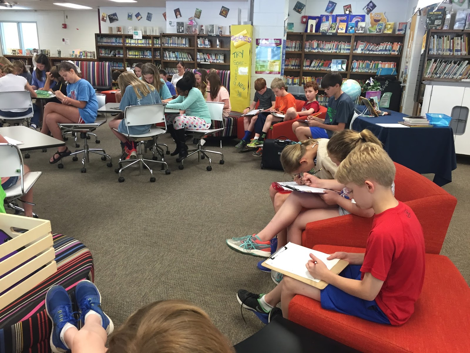 But the thing that struck me most about these students was the way they LISTENED. Not just to me, but to one another. When, during the writing workshop, a student read aloud his or her work, and I asked, "what stands out to you about the poem?" or "what words or images do you recall?" or "any more feedback?" there were always lots of hands, and lots of very precise comments. And, I have learned, this is something that is taught. That comes with practice. At Vestavia Elementary Central, they have created a Culture of Listening. I love it!