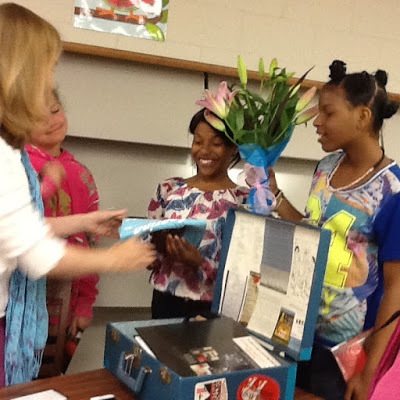 Ludelphia love!When Angela Moorer, librarian at Gresham Elementary contacted me about a school visit, I was thrilled and inspired. Gresham is a Title 1 Jefferson County Alabama school tucked in the heart of Vestavia. Most of the students are non-readers, so this year, in an effort to change that, Mrs. Moorer created literature circle groups. Each group got to choose a book to read together. One 5th grade group of six chose LEAVING GEE'S BEND. Mrs. Moorer had hoped to travel with these students to Gee's Bend, but she wasn't able to make that happen, so she decided to contact me instead!Here are some pictures from our (surprise) visit: