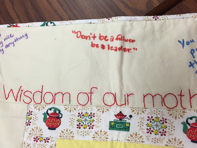 New wisdom for my "Wisdom of our mothers" quilt:"Don't be a follower, be a leader."