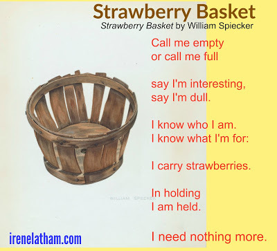 Today's poem is inspired by "Strawberry Basket" by William Spiecker. I wasn't sure what to do with this image until I played around with it for a while. It's such a simple image... compelling in its nakedness. The more I looked at it, the more I knew this basket was brave and confident. I decided to give it a voice.