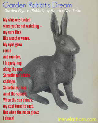 Today's poem is inspired by a garden ornament. I wasn't sure what this rabbit had to say until I worked with it a while.... and somehow it ended up another "dream" poem! (My 3rd this series.)