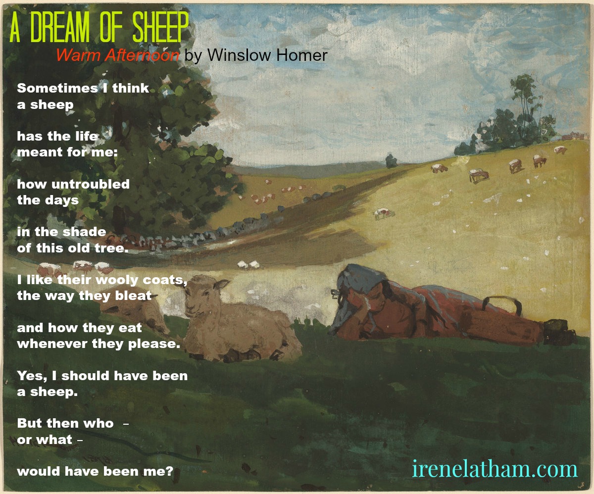 Today's piece is inspired by Pat's piece... instead of lion, lamb! Warm Afternoon by Winslow Homer. I guess I am sort of stretching the theme yet again... but that's part of the fun! (And yes, there is a typo in the graphic -- and no time to fix it. Alas. I know my Poetry Friday friends will be forgiving. :)