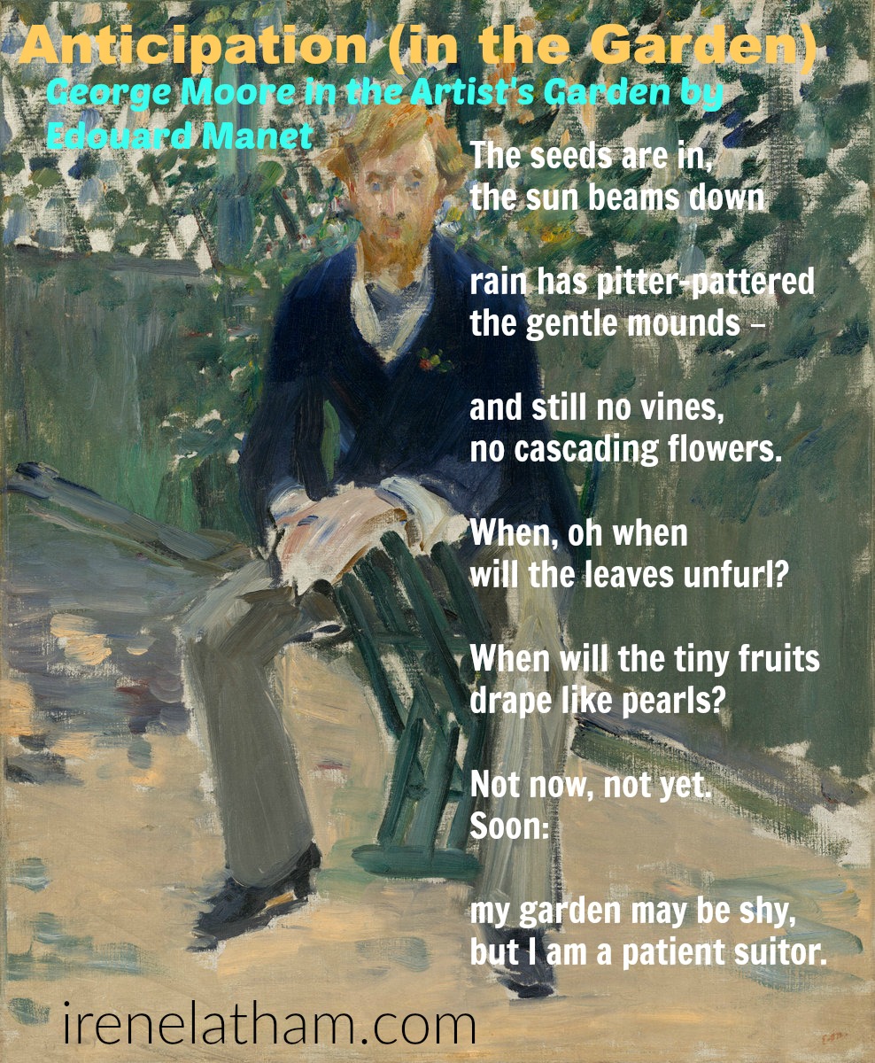 Today's poem is another love poem of sorts. I wasn't sure what exactly to do with George Moore in the Artist's Garden by Eduoard Manet, so I gave him some feelings. About the garden. :) He looks like a nice enough fellow, doesn't he?