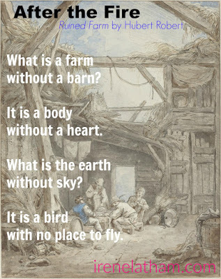 "After the Fire" after Ruined Farm by Hubert Robert