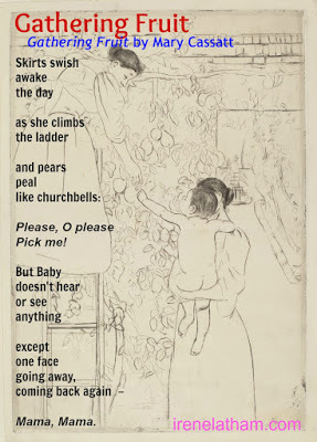 Today's poem was tough for me! I adore work by Mary Cassatt... all those lovely domestic scenes, often of mother and baby... and I wasn't sure what fresh and surprising I could bring to this piece. Then I thought about the title, how there are all kinds of "fruit"... I'll want to revisit this one in the future, but for now, here's where I've landed: