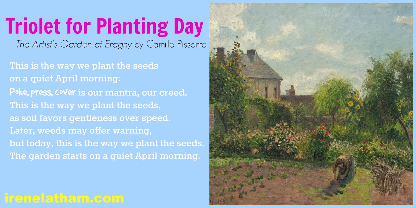 Back to ARTSPEAK! This year's theme is "Plant. Grow Eat." It was inspired by the release of my latest book FRESH DELICIOUS: Poems from the Farmers' Market. Here's yesterday's poem:"Triolet for Planting Day" after The Artist's Garden at Eragny by Camille Pissarro