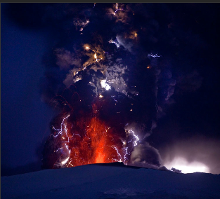 This is one of the photos by Ragnar Sigurdsson, the man who loves volcanoes and northern lights. The volcano at night, lava and lightning.