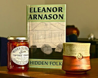 The book and a jar of Tiptree marmalade, my current favorite variety. The photo also contains a cup by the potter Rachael Hoffman Dachelet.