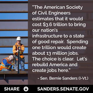 13 million x 3.6 is 46.8 million. The US labor force, employed and unemployed, is 156 million. We could employ everyone who wants a job and have jobs left over. This does not count the new construction needed to deal with global warming. I read articles about how robots are going to make everyone unemployed. Long term this might be true. But short term we have to rebuild the world. After that is done, we can worry about unemployment.