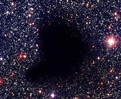 Where did all the stars go? What used to be considered a hole in the sky is now known to astronomers as a dark molecular cloud. Here, a high concentration of dust and molecular gas absorb practically all the visible light emitted from background stars. The eerily dark surroundings help make the interiors of molecular clouds some of the coldest and most isolated places in the universe. One of the most notable of these dark absorption nebulae is a cloud toward the constellation Ophiuchus known as Barnard 68, pictured above. That no stars are visible in the center indicates that Barnard 68 is relatively nearby, with measurements placing it about 500 light-years away and half a light-year across. It is not known exactly how molecular clouds like Barnard 68 form, but it is known that these clouds are themselves likely places for new stars to form. In fact, Barnard 68 itself has been found likely to collapse and form a new star system. It is possible to look right through the cloud in infrared light.