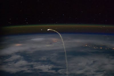 What's that strange bright streak? It is the last image ever of a space shuttle from orbit. A week and a half ago, after decoupling from the International Space Station, the Space Shuttle Atlantis fired its rockets for the last time, lost its orbital speed, and plummeted back to Earth. Within the next hour, however, the sophisticated space machine dropped its landing gear and did what used to be unprecedented -- landed like an airplane on a runway. Although the future of human space flight from the USA will enter a temporary lull, many robotic spacecraft continue to explore our Solar System and peer into our universe, including Cassini, Chandra, Chang'e 2, Dawn, Fermi, Hubble, Kepler, LRO, Mars Express, Messenger, MRO, New Horizons, Opportunity, Planck, Rosetta, SDO, SOHO, Spitzer, STEREO, Swift, Venus-Express, and WISE.