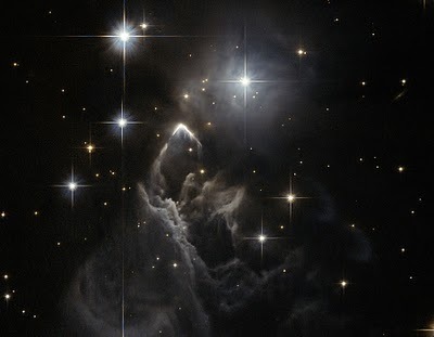 What's lighting up nebula IRAS 05437+2502? No one is sure. Particularly enigmatic is the bright upside-down V that defines the upper edge of this floating mountain of interstellar dust, visible near the image center. In general, this ghost-like nebula involves a small star forming region filled with dark dust that was first noted in images taken by the IRAS satellite in infrared light in 1983. Shown above is a spectacular, recently released image from the Hubble Space Telescope that...