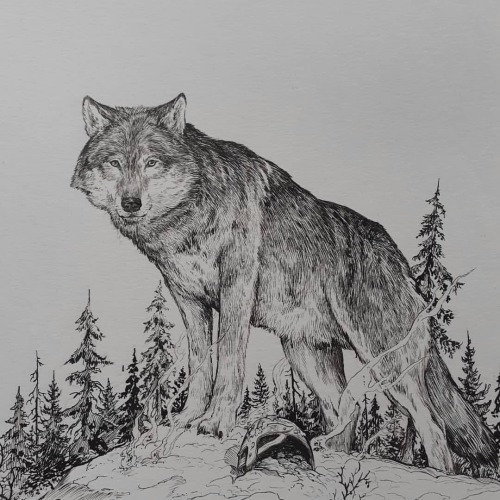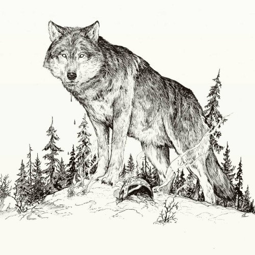 Giant wolf commission #illustration #wolf #brushandink #commission #artistsoninstagram