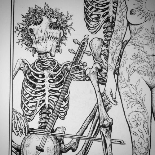 A bit more progress… #inking #illustration #folkhorror #folkart #pastoral #wolfskull #skeleton #floraltattoo #horror #psychedelic #art #artistsoninstagram