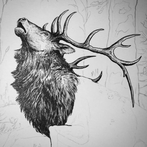Elk in progress #illustration #brushandink #elk #natureart...